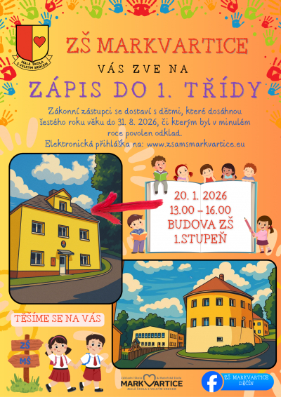 K zápisu se dostaví zákonní zástupci s dětmi, které dosáhnou šestého roku věku do 31. 8. 2026 a zákonní zástupci dětí, kterým byl v minulém roce povolen odklad povinné školní docházky.